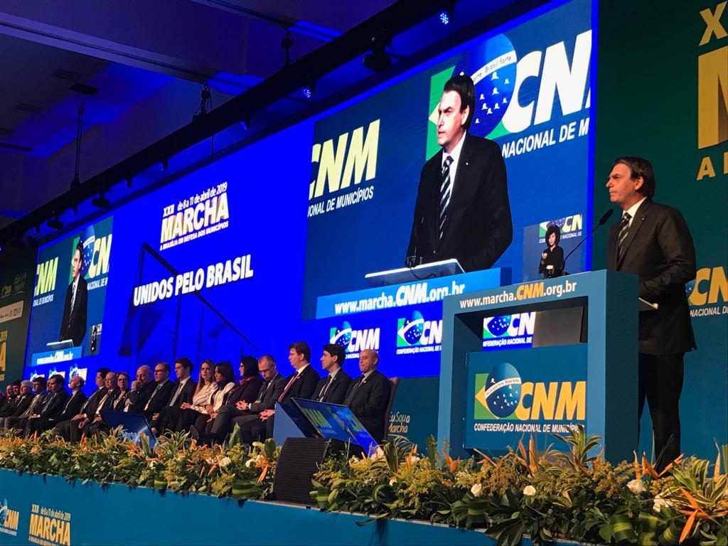Na solenidade de abertura da 22ª Marcha a Brasília em Defesa dos Municípios, o presidente Jair Bolsonaro defendeu, nesta terça-feira (9), a construção de um novo pacto federativo e o aumento dos recursos para o Fundo de Participação dos Municípios (FPM). “Nós temos pouco, mas queremos dividir o pouco que temos com vocês”, disse a prefeitos, vereadores e gestores municipais.